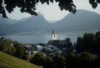 This tiny town stands on a rocky spur on the east shore of the lake of the same name (across the lake from the village of St. Gilgen). Legend has it the Bishop of Regensberg, canonized in 1052, came to the shores of this lake to seek solitude, and the church which stands here bearing his name is the site of freqent pilgrimiges for the folk of nearby Salzburg.