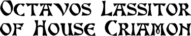 Background: Born in 1074 A.D. to Frank and Gelda Leon, Octavos was the third of three sons. From birth, everyone could sense that there was something different about Octavos. He had weird green eyes, and just his presence gave everyone the creeps. So much so, that Frank's inn started to lose business, and he owned the only inn in all of Vannes. To save his business and to put the town folk at ease, Frank gave Octavos to a passing Magus, the only person who seemed to like the young boy. The Magus was Biraben of House Merinita of the Covenant Loire-Inféieure, who took Octavos on as his apprentice at age eight. Biraben gave Octavos his Hermetic name, Lassitor, which he still goes by. Near the end of Lassitor's apprenticeship Biraben took him into a faerie regio, but something went wrong. When they entered, Biraben was lost, leaving Lassitor trapped. He was in the regio for what seemed like one year to him, but it was really one hundred years. There were other humans trapped with him, but when another Magus found him and tried to release the captives, only Lassitor survived. His survival can be attributed to his Gift, but his exit from the regio caused him to undergo a temporary Twilight, leaving him susceptible to faerie powers and turning his hair white.